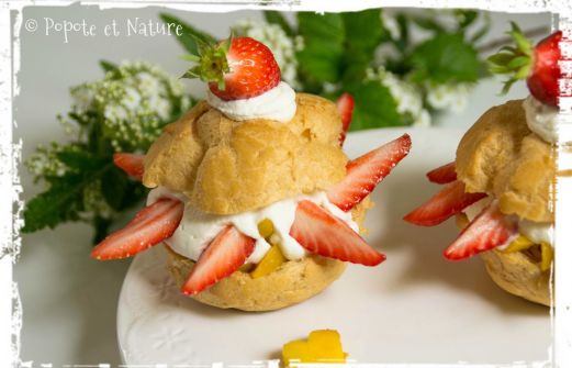 Choux à la mangue et aux fraises fraîches, chantilly crémeuse à la bergamote J'ai reçu il y a quelques jours un petit colis parfumé de Baumes des Anges avec un flacon de géranium bourbon et un flacon de bergamote tardive . Présentés en vapos, ces flacons permettent de faire des "pschitt" p [...]