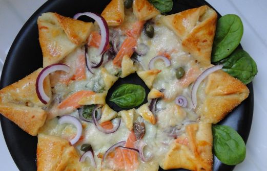 Adaptée d'une recette de Dorian - pourquoi est-ce que je vous raconte ça. Ingrédients Pâte à pizza Moutarde Feuilles d'épinards frais Oignons rouges Mozzarella Saumon fumé Étaler la pâte et faire huit entailles autour et au centre. Étaler de la moutarde sur le fond de [...]