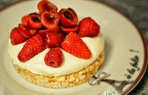 Ingrédients (pour 2 personnes) : - 2 galettes de riz complet - 15cl de crème entière - 2 CS de sucre glace - 8 fraises - 10 framboises - 8 cerises Commencez par laver les fruits. Dénoyautez les cerises et équeutez les fraises. Montez la crème en crème fouettée et [...]