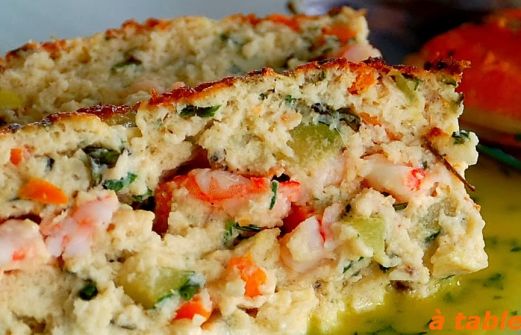Une délicieuse terrine de poisson et crustacés qui se déguste tout juste sortie du four, dans une petite sauce marinière.