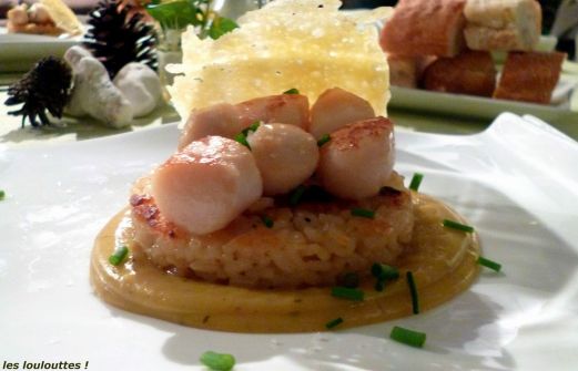 Petite recette publiée en souvenir d'une petite soirée bien sympathique en compagnie de Lilou et Chacha ! Ingrédients pour 4 gourmands une vingtaine de petites coquilles saint Jacques - 2 gousses d'ail - 1 dosette de safran - riz arborio ou autre riz à risotto - 50 gr. de parmes [...]