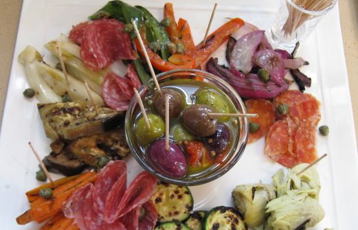Grands plateaux d'anti pasto d'olives, légumes grillés, bruschetta et prosecco pour l'apéro, soupe froide de petits pois à la menthe, lasagnes et bro [...]
