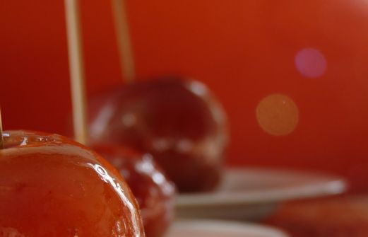 Laver et sécher les pommes, retirer la queue et enfoncer un pic en bois dans celles ci.