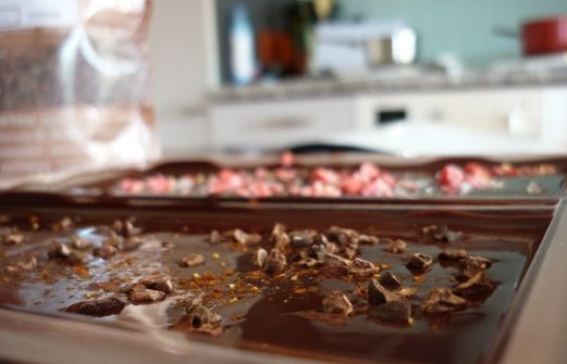 200g de chocolat noir 70% de bonne qualité Piment d'Espelette en poudre Grué de Cacao Fleur de Sel Pralines Roses