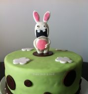 Après un atelier de pâte à sucre, première création d'un gâteau "Lapin crétin"
