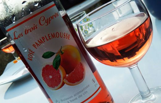 On accompagne le tout avec un rosé trouvé au supermarché et aromatisé au pamplemousse rose. Pas mal !