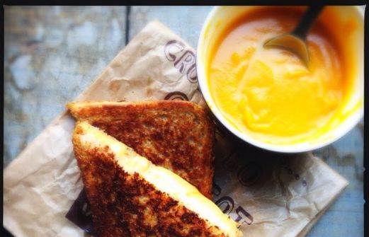 Pour accompagner le reste de ma soupe d'hier ( soupe de courge à la cardamome) , j'ai eu envie de me faire un grilled cheese.