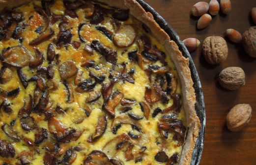 Préparer d'abord la pâte en mélangeant 125 g de farine blanche et 125 g de farine de châtaigne, saler. ajouter 130 g de beurre en petits dés et 5 cl d'eau puis travailler la pâte à la main jusqu'à obte [...]