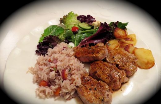 À présent que je cuisine les filets de porc en les découpant à l’avance en médaillons, je ne les ferais plus autrement. C’est tellement plus agréable de les servir ainsi, en grosses bouchées assaisonnées au goût et bien saisies à la poêle ! Cette fois, je leur ai ajouté des pommes b [...]