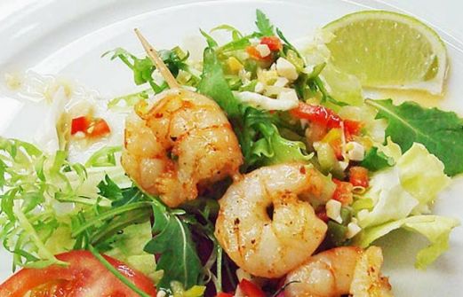Ingrédients: - 16 grosses crevettes roses cuites - 1/2 cc de gingembre en poudre - 2 gousses d'ail - 1/2 botte de cresson - 2 poignées de pousses d'épinards - 1 poignée de roquette - 6 abricots (frais ou en conserve) - 2 CS de jus d'orange - 2 CS de vinaigre balsamique - huile d'olive - sel, po [...]