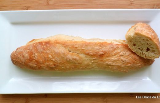 Soyons d'accord : c'est une recette manuelle pour paresseux. C'est une version sans pétrissage, réalisée sur une base de pâte très hydratée (collante). Pourtant, le rendu est très satisfaisant . Pour 2 baguettes courtes : 300 g eau 1 ¼ cc sel 375 g farine [...]