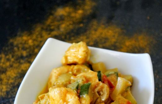 Et voici une nouvelle recette destinée à égayer nos assiettes à défaut d'avoir un peu de soleil dehors !!! J'avais acheté du lait de coco... mais sans idée précise. Je cuisine rarement sucé-salé, mais nous avions beaucoup aimé le saumon au lait de coco , alors pourquoi pas avec du poulet ? [...]