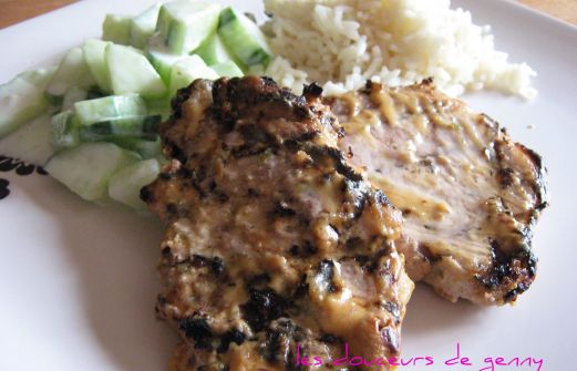 Une recette de Ricardo vraiment bonne. La recette original est faite avec des poitrines de poulet mais moi je l'ai faite avec du porc... CÔTELETTES DE PORC ASIATIQUES, SALADE DE CONCOMBRE 4-5 côtelettes de porc (ou poitrines de poulet) Marinade -1/2 tasse de yogourt nature 10% (moi crème sûre) [...]