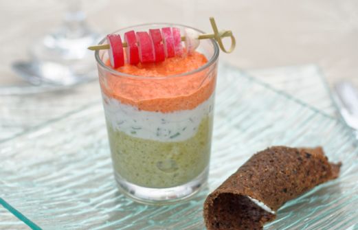 Préparation : 15 minutes Cuisson : 17 minutes Ingrédients (pour 4 personnes) : 1 poivron rouge 1 poivron vert 70 gr d'olives noires dénoyautées 1 échalote 1 gousse d'ail 1 bouquet de ciboulette fraîche 150 gr de fromage blanc [...]
