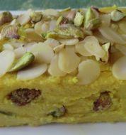 HALWA ou petit gâteau indien aux pistaches raisins et amandes. Des Délices venus d'Inde: quel Voyage !!! INGRÉDIENTS: (pour 2) 50 g semoule 20 cl lait 30 g sucre amandes efilées pistaches raisins secs 1 cuillère à café de fleur d'oranger 1 cuillère à café de miel 1.5 cuillère à soupe de b [...]