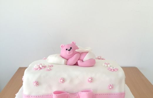 Je l'ai décoré de petits oursons-anges, des rubans et des fleurs en pâte à sucre: