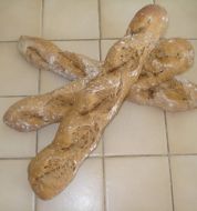 Ingrédients : Poolish: 150 g de farine 150 g d'eau 1 sachet de Briochin Reste de la pâte : 350 g de farine 170 g d'eau 1 sachet de Briochin 2 cc de sel La veille, préparer la poolish en mélangeant, soit à la main, soit à la map (dans ce cas stopper la machine tout de suite après le pétrissage) [...]