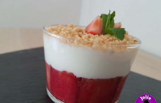 Pour 4 personnes, vous avez besoin de: Pour la rhubarbe et la fraise: 250 gr de tiges de rhubarbe 120 gr de fraise 300 ml d'eau 150 gr de sucre Pour le crumble: 20 gr de poudre d'amande 20 gr de farine 20 gr de beurre 10 gr de sucre Pour le yaourt: 400 gr de [...]