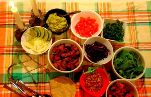 Je suis tombée sur des vrais "tortillas" dans une fruiterie de mon "bled". Yeah! Ça goûtait presque ceux de la Baja California . Armée de cette heureuse trouvaille, j'ai préparé d'heureuses garnitures. J'aime ce genre de repas à composer soi-même. La preuve ! [...]