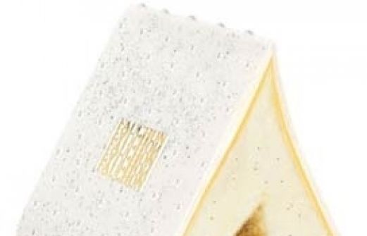 Une goutte crémeuse réalisée à partir de mangue, citron confit et chantilly au chocolat blanc. Le flocon est recouvert d'une pâte d'amande à la vanille de Madagascar. Compter 68€ pour ce dessert neigeux six personnes.