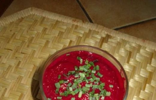 Pour 2 Personnes : -2 betteraves cuites -5 cl de bouillon de légumes -1 yaourt bulgare -1 CS de vinaigre balsamique -ciboulette -sel, poivre -zestes d'orange (facultatif) Coupez les betteraves en morceaux et mixer-les. Ajouter le bouillon, le vinaigre et le yaourt. Mélangez bien. Placez au frai [...]