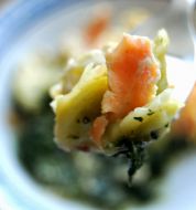 Ingrédients : Pâtes fraîches découpées en plaques rectangulaires 400g d'épinards 300g de saumon 1/4 L de sauce blanche (béchamel) gruyère parmesan chapelure Préparation : Préchauffer le four à 180° Faire cuire les pâtes dans un grand volume d'eau salée. Équeuter et laver les épinards. Les [...]