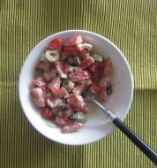 Nombre de personnes - + 1 cuillère à soupe de ail haché 2 cuillères à soupe de Huile d'olive 1 petit verre de vin rouge 5 tomates séchées et marinées coupées en petit morceaux 12 olives vertes dénoyautées et coupées en morceaux 2 cuillères [...]