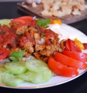 Nombre de personnes - + 800 g de filet de poulet Pain pita (compter 1,2 voire 3 pains par personne selon l'appétit et la taille des pain pita) 1 oignon 1 poivron 1 boîte de pulpe de tomate (environ 400-500 g) 2 cuillères à soupe de épice [...]