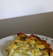 Nombre de parts - + 1 pâte brisée prête à dérouler reste de poulet 1 oignon 2 oeufs 20 cl de crème fleurette + 10 cl de lait 1 pincée de muscade 2 cuillères à soupe de huile (j'utilise de l'huile d'olive) Poivre Sel [...]