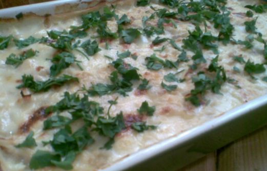 - chou-fleur environ 1 kg cuit à l'eau bouillante salée et découpé en petits morceaux - 500 mg environ d'escalopes de dinde découpés en petits cubes - 1 grand oignon haché - 1 poignet de persil haché - 500 ml environ de sauce béchamel - 4 portions de fromage type vache qui rit [...]