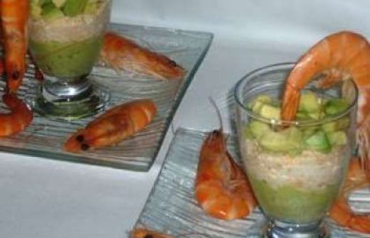 2 avocats , 6 surimis à la chair de crabe 4 cuillères à café de jus de citron 1 cuillère à café de sauce spéciale hamburger ou sauce corail 4 cuillères à soupe de crème fleurette 1 pincée de sel, 1 pincée de poivre Préparation 1) mousse d'avocat : mixer 1 avocat avec 2 cuil [...]