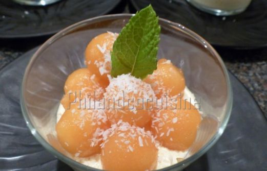 Pour cette recette pour 2 à 3 personnes, il vous faudra : 1 melon 20 cl de lait de coco 3 jaunes d' oeufs 3 càs de noix de coco râpée 2 càs de rhum blanc ou ambré 2 càs de sucre quelques feuilles de menthe (pour la décoration) Matériel 1 saladier, 1 casserole, 1 cuillère à boule [...]