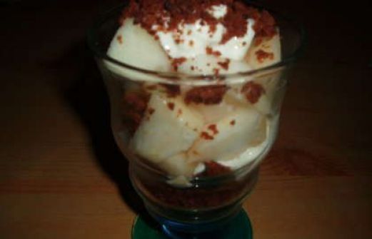 2 belles poires du pain d'épice (une belle tranche par personne) 100g de fromage blanc 100g de mascarpone 2 cuillères à soupe de sucre roux Préparation Faire dorer le pain d'épices, dans une poêle dans un peu de beurre. Mixer le afin d'obtenir une poudre fine. Découper, et épépin [...]