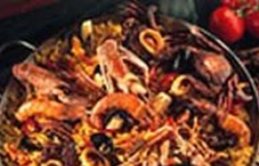 1.2 kg de poularde 250 g de viande de porc dans le filet 200 g de chorizo 500 g de moules 8 gambas 300 g de riz grain long 4 tomates 100 g de petit pois 1 citron 2 gousses d'ail : 6 c. à soupe d'huile d'olive 37.5 cl de vin blanc sec 75 cl de bouillon de v [...]