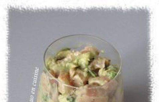 - 200 g de pavé de saumon - 1 petit avocat - le jus d'un demi-citron - Une quinzaine de feuilles de coriandre - 1 cuillère à café d'huile d'olive - 1 cuillère à soupe de sauce soja - 1 cuillère à café de moutarde - 1 pincée de gingembre moulu et 1 pincée de coriandre moulue - Sel, poiv [...]