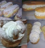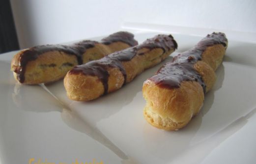 Pour une 15 de petits éclairs ou 7/8 gros: Pour la pâte à choux : 50 g de lait (5 cl) 50 g d?eau (5 cl) 1 g de sel 2 g de sucre 45 g de beurre 60 g de farine 150 g d' oeuf (2 à 3 oeufs) Pour la crème patissière au chocolat : 500 g de lait (50 cl) 120 g de sucre semoule 4 jaun [...]