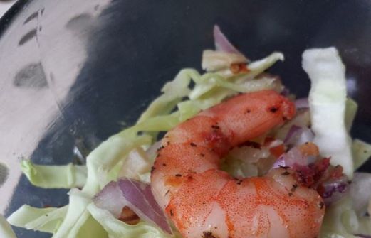 150 g de chou plat 1 oignon rouge 4 c. à soupe d'huile d' olive 8 crevettes décortiquées 1 c. à café de vinaigre balsamique blanc 1/4 c. à café de réglisse en poudre 1/2 jus de citron 2 pétales de tomates séchées 1 gousse d' ail Sersil Sel, poivre [...]