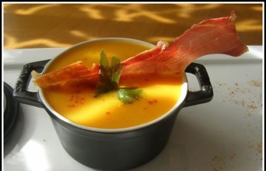 -1.5 kg de courge - 1 oignon - 1 cube de bouillon de légumes - 3 pistils de safran - 15 cl de crème fraîche liquide entière - 1 tranche de jambon de Bayonne - 1 pincée de piment d'Espelette - sel Préparation Etape 1 Coupez la courge en petits morceaux. Émincez l'oignon en peti [...]