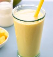 2 bananes (grosses) 4 yaourts nature 40cL de lait entier (bien frais) 40 grammes de sucre en poudre 4 pincées de cannelle en poudre Jus de citron Préparation Etape 1 Pelez les bananes, coupez-les en morceaux et arrosez-les avec un peu de jus de citron pour éviter qu'elles ne s'o [...]