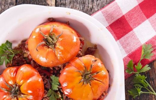 8 tomates 60 g de petit sale 80 g de viande de boeuf (ou restant cuit) 80 g de viande de veau 2 oignons blancs 50 g de fromage de vache sec râpé 1 oeuf 40 g de pain dur trempé dans du lait 30 de riz rond 5 feuille de basilic 2 gousses d ail huile persil [...]