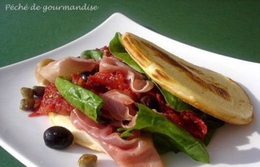 - 90 g de farine de blé - 90 g de farine de maïs - 20 cl de lait - 5 g de levure du boulanger - 3 oeufs - 80 g de parmesan râpé - 4 tranches de jambon de Parme - 250 g de jeunes pousses d' épinards - 4 tomates - 50 g de parmesan - 1 gousse d'ail - 1 cuillère à soupe de vinaigre [...]