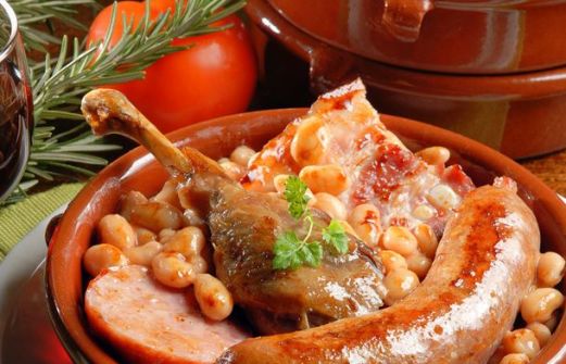 haricots blancs, secs : 1 l carotte : 1 oignon : 1 clou de girofle : 8 oignon haché : 200 g bouquet garni (persil, thym, laurier) : 2 ail : 5 gousses graisse d'oie : 1 pot tomate pelée : 6 lard de poitrine : 300 g couenne : 200 g échine de porc : 7 [...]