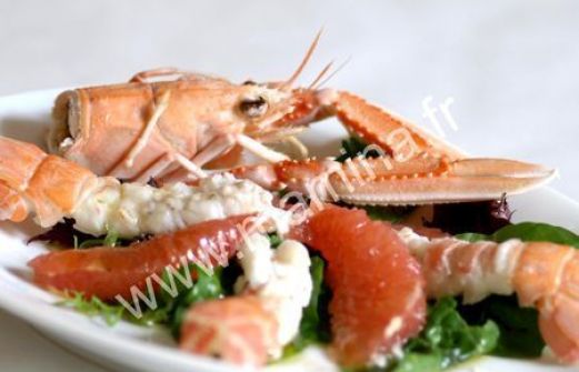 - 4 à 5 langoustines par personne (selon la taille) - 4 poignées de jeunes pousses ou mesclun - 2 pamplemousses - 1 échalote émincée finement - 2 pincées de sucre en poudre - 3 cuillères à soupe d'huile d'olive - 1 cuillère à soupe de vinaigre de xérès - Sel et poivre Préparation [...]