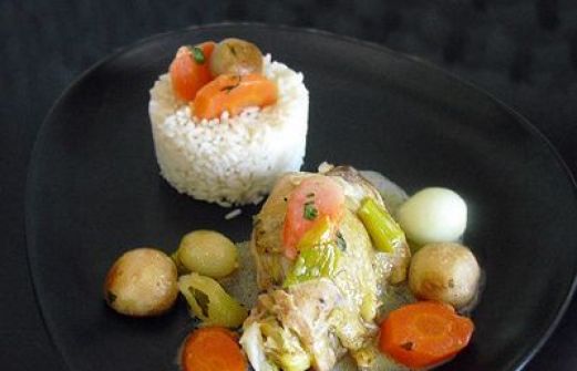 1 gros poulet fermier en morceaux 3 tablettes de bouillon de volaille Maggi 1 oignons 2 blancs de poireaux 4 carottes 2 gousses d’ail 1 demi bouquet de persil 500 gr de champignons de Paris 200 gr d’oignons grelots frais ou surgelés 1 branche de thym 2 feuilles de laurier 8 clou [...]