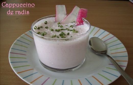 - 1 botte de radis - 300 g de fromage frais type Carré frais ou Saint Môret - 30 cl de lait très froid - 1 cuillère à soupe de jus de citron - 2 cuillères à soupe d'huile d'olive Préparation Etape 1 Laver les radis et en réserver un par personne. Etape 2 Les mettre dans le bo [...]