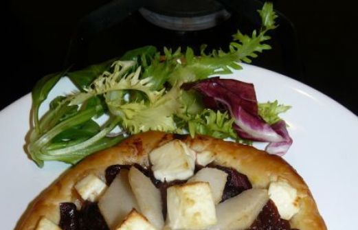 1 pâte feuilletée 1 poire 800g d' oignon rouge (un gros pour moi) 1 poignée de raisins secs 200g de feta 2 cas d'huile d'olive 4 brins de thym (pas mis) sel et poivre Préparation Etaler la pâte et faire 4 rectangles ou ronds. Les mettre sur la plaque en silicone et gar [...]