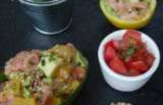 - 1 citron - 1 avocat bien mûr - 2 tranches de saumon fumé coupés en lamelle - 2 abricot secs moelleux coupés en petits dés - 1 tomate pelée et coupée tout petits dé - 1 échalote émincée finement - 2 cuillères à soupe de feuilles de coriandre hachées - 1 cuillère à soupe de graine [...]