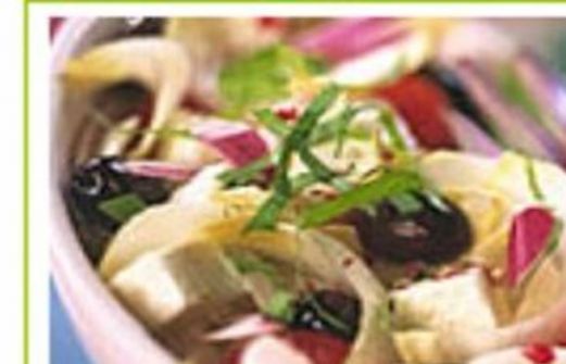 oignon rouge : 1 endive : 4 tomate grappe : 5 feta : 150 g olive noire dénoyautée : 12 basilic : 1 branche vinaigre balsamique : 3 c. à soupe huile d'olive : 8 c. à soupe sel, poivre Préparation ÉTAPE 1 Emincez finement l'oignon rouge. ÉTAPE 2 Co [...]