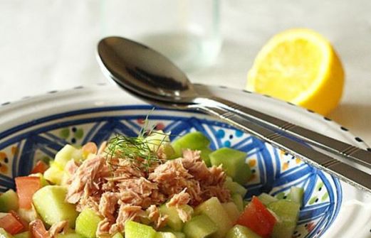 1 concombre 2 tomates 1 fenouil 1 oignon nouveau 1 pomme verte 1 petite boîte de thon au naturel 2 c. à soupe de vinaigre 3 c. à soupe de jus de citron 3 c. à soupe d'huile sel Préparation ÉTAPE 1 Épluchez le concombre, enlevez le cœur avant d'en faire [...]