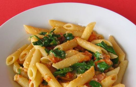 2 tasses de penne rigate 1 1/2 tasse de mini-tomates (cerise 15 ml de huile d'olive 40 g de bacon de poulet 80 g de roquette 50 g de fromage féta sel poivre 2 g de parmesan Préparation ÉTAPE 1 Préchauffer le four à 230°C/450°F. ÉTAPE 2 Pour gagner du tem [...]
